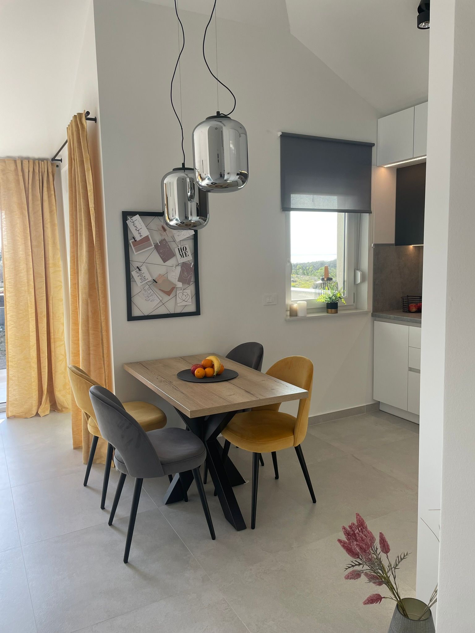 Ovaj apartman se sastoji se od 1 dnevne sobe, 1 zasebne spavaće sobe i 1 kupaonice s walk in tušem i sušilom za kosu. Sve sobe su klimatizirane i opremljene sa flat screen smart televizorima. Gosti će pronaći ploču za kuhanje, hladnjak, perilicu posuđa,  aparat za čaj i kavu, mikrovalnu pecnicu, kuhinjski pribor u potpuno opremljenoj kuhinji. Apartman također ima vanjski roštilj. Uz terasu s pogledom na more, ovaj apartman također nudi privatno parking mjesto za vase vozilo. Jedinica nudi 2 kreveta. Jedan bracni krevet i jedan kauc na razvlacenje. Djeca su dobro dosla u nasim apartmanima Rimac. Maksimalni broj gostiju u ovom apartmanu su: 2 odraslih & 2 djece do 18 godina.