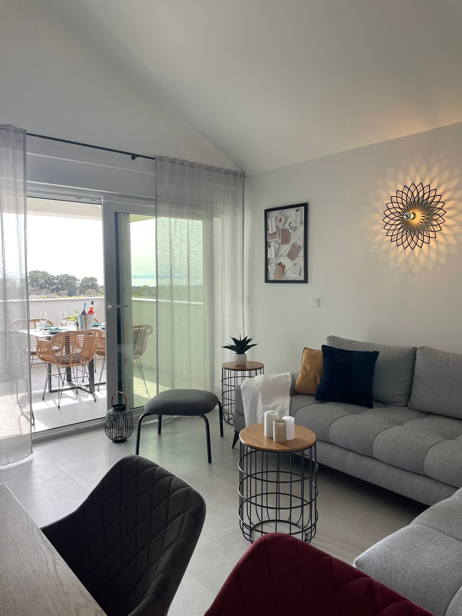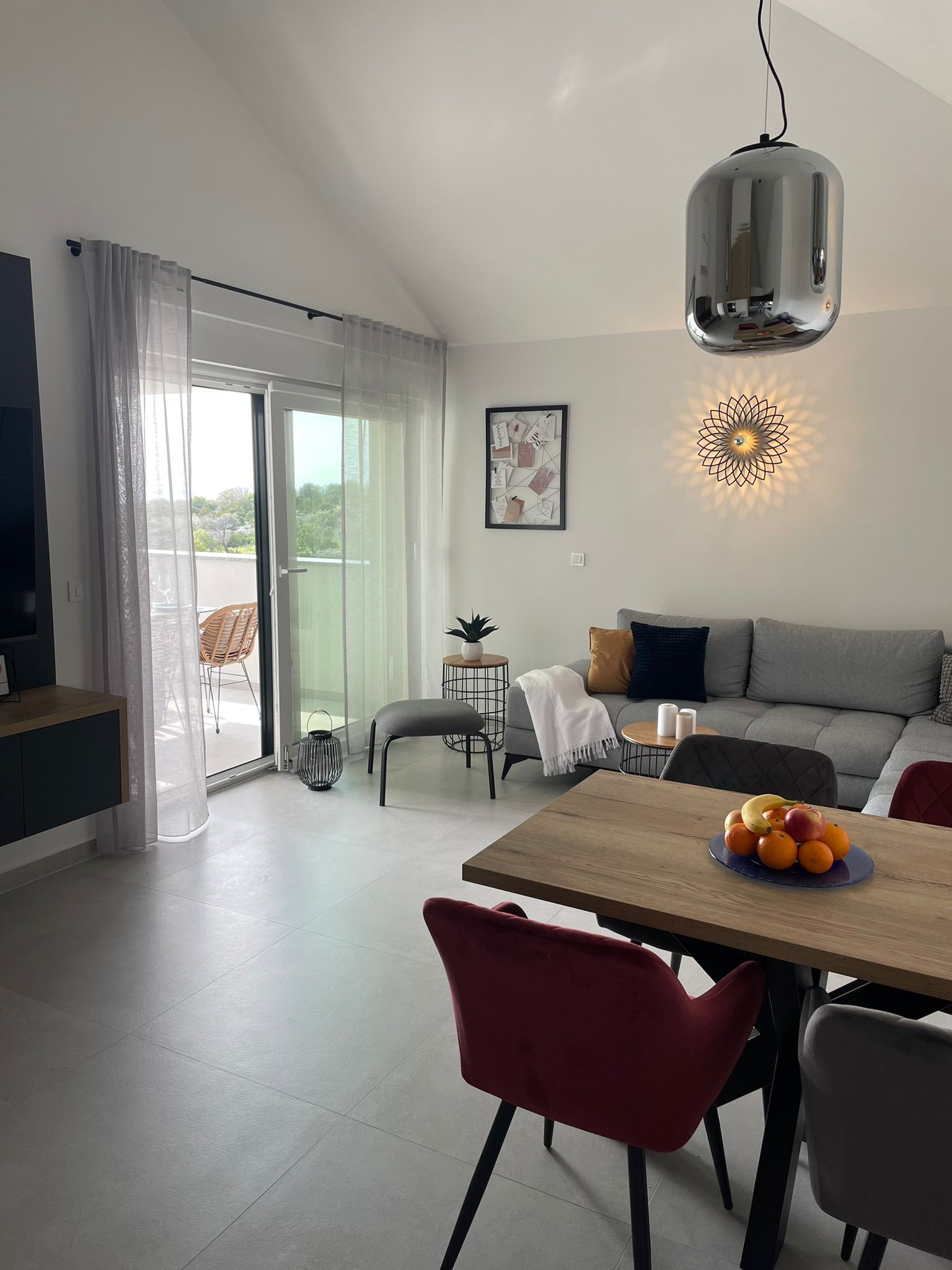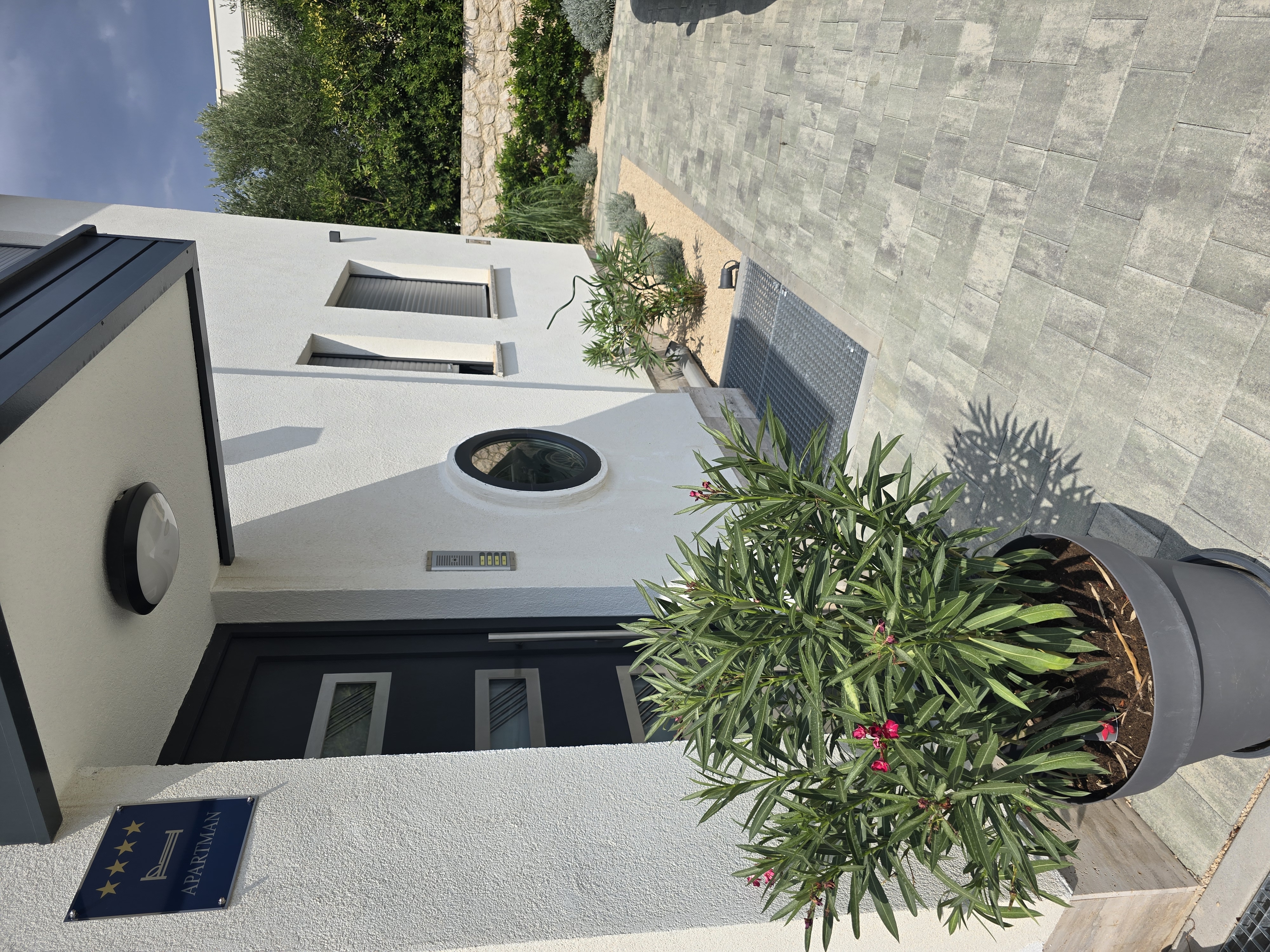 Ovaj apartman se sastoji se od 1 dnevne sobe, 2 odvojene spavaće sobe, 1 dodatni WC i 1 kupaonicu s walk in tušem i sušilom za kosu. Sve sobe su klimatizirane i opremljene sa flat screen smart televizorima. Gosti će pronaći ploču za kuhanje, hladnjak, perilicu posuđa,  aparat za čaj i kavu, pecnicu, mikrovalnu pecnicu, kuhinjski pribor u potpuno opremljenoj kuhinji. Apartman također ima vanjski roštilj. Uz terasu s pogledom na bazen, ovaj apartman također nudi privatno parking mjesto za vase vozilo. Jedinica nudi 3 kreveta. Dva bracna kreveta i jedan kauc na razvlacenje. Djeca su dobro dosla u nasim apartmanima Rimac. Maksimalni broj gostiju u ovom apartmanu su: 4 odraslih & 2 djece do 18 godina.